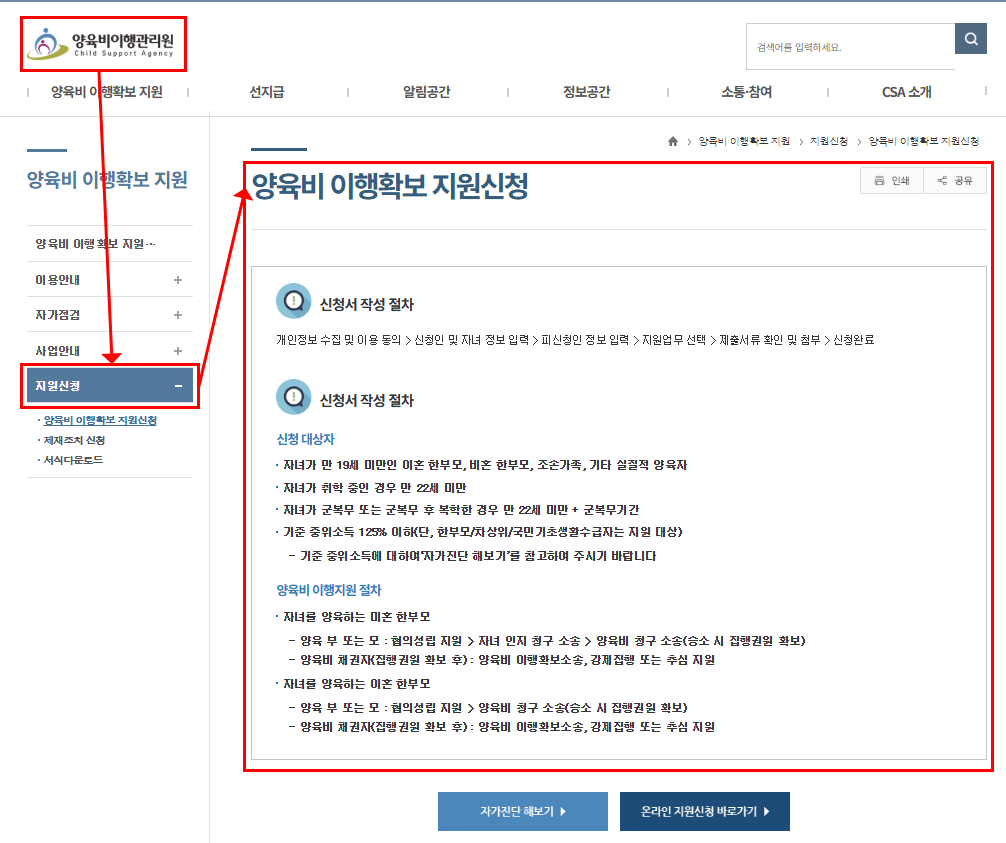 양육비이행관리원 홈페이지를 통해 온라인 신청이 가능하며, 필요한 서류를 준비하여 제출하면 됩니다.