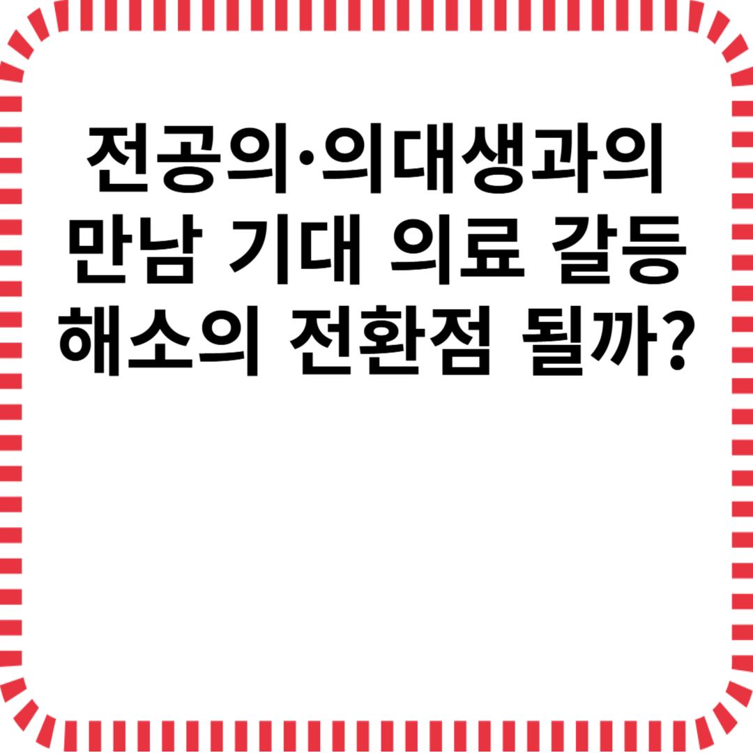 전공의·의대생과의 만남 기대가 현실이 되며 의료계의 긴장감이 조금씩 완화되고 있습니다. 정부와 대한의사협회가 전공의·의대생과의 만남 기대를 공공연히 언급하면서, 이번 대화가 향후 보건의료 정책의 방향을 가를 중요한 분기점이 될 것으로 보입니다. 국민들 역시 전공의·의대생과의 만남 기대에 주목하고 있으며, 그 결과가 어떠하든 대한민국 의료의 미래와 직결된 사안임은 분명합니다. 그만큼 이번 전공의·의대생과의 만남 기대는 상징적인 의미를 넘어 실질적인 변화를 이끌 수 있는 중요한 순간입니다.