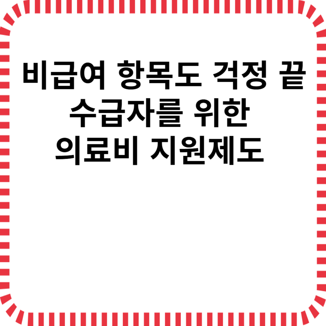 비급여 항목은 본래 건강보험이 적용되지 않아 수급자라도 부담이 큽니다. 하지만 정부와 지자체, 민간단체에서는 비급여 항목까지 일부라도 지원받을 수 있는 다양한 제도를 마련해두고 있어요.