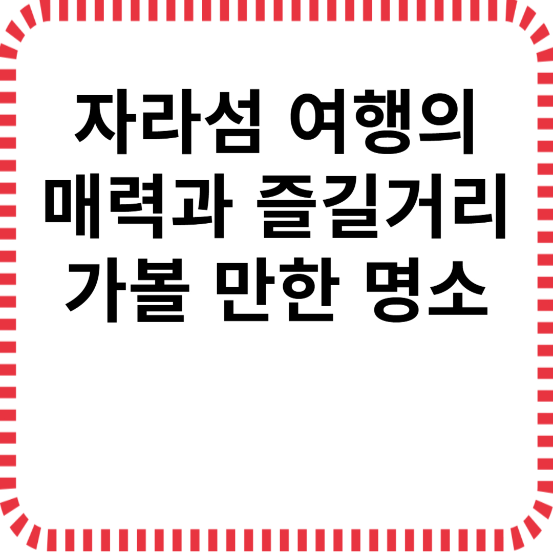 자라섬은 아름다운 자연 경관과 다양한 즐길 거리가 있는 매력적인 여행지입니다. 특히 자라섬 재즈 페스티벌로 유명한 이곳에서는 음악과 자연이 어우러지는 특별한 경험을 할 수 있습니다. 이 글에서는 자라섬 여행의 매력과 함께 꼭 가봐야 할 명소, 여행 시 유의할 점 등을 소개하고자 합니다.