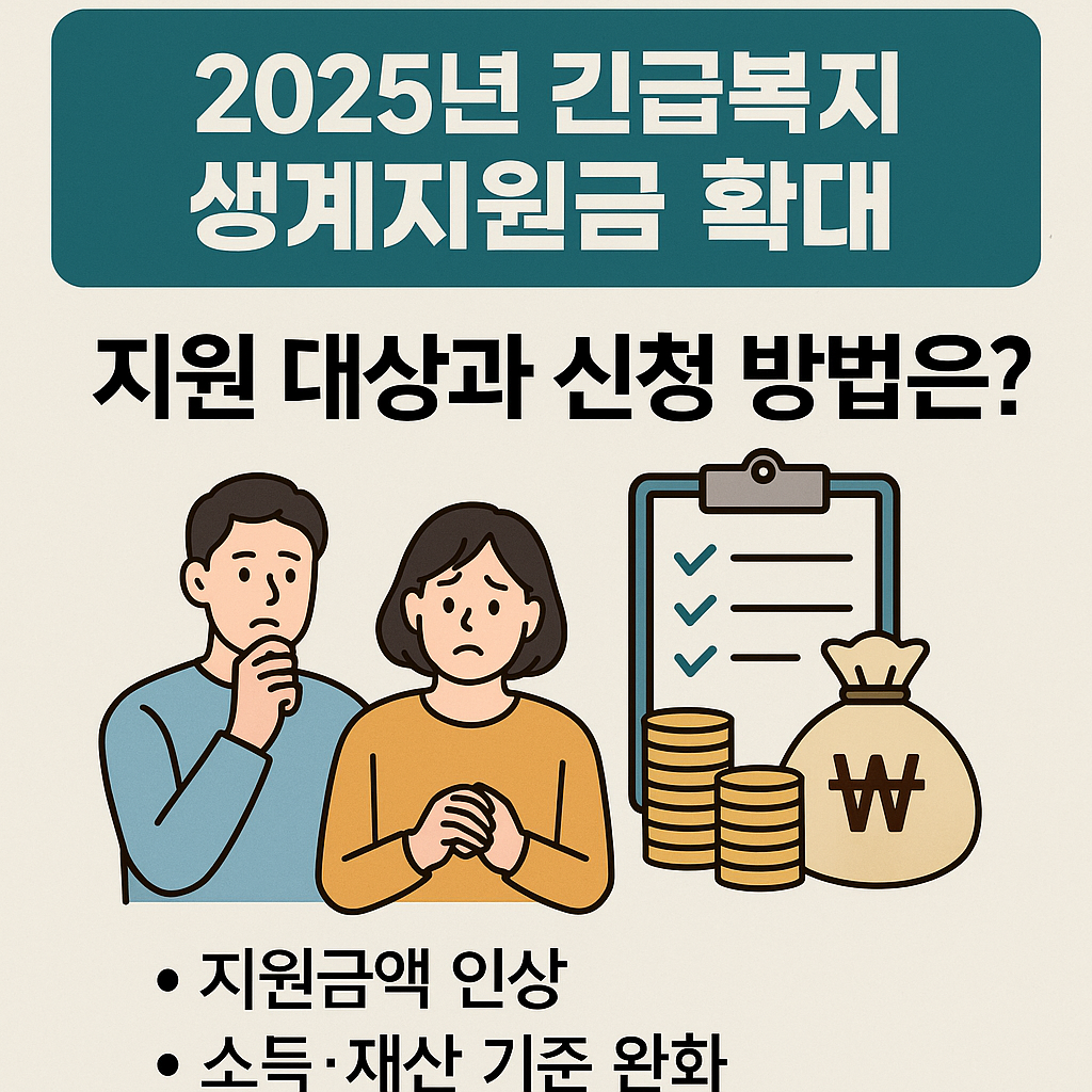 2025년 긴급복지 생계지원금 제도가 대폭 확대되어 더 많은 국민이 위기 상황에서 실질적인 도움을 받을 수 있게 되었습니다. 갑작스러운 실직, 질병, 가정 내 폭력, 이혼 등으로 생계유지가 어려워진 가구에게 신속한 지원을 제공하는 이 제도는 2025년부터 지원 대상과 금액이 크게 확대됩니다.