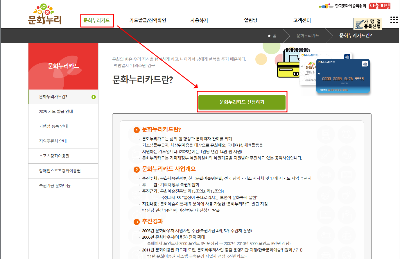 문화체육관광부와 한국문화예술위원회가 함께 운영하는 복지카드입니다.