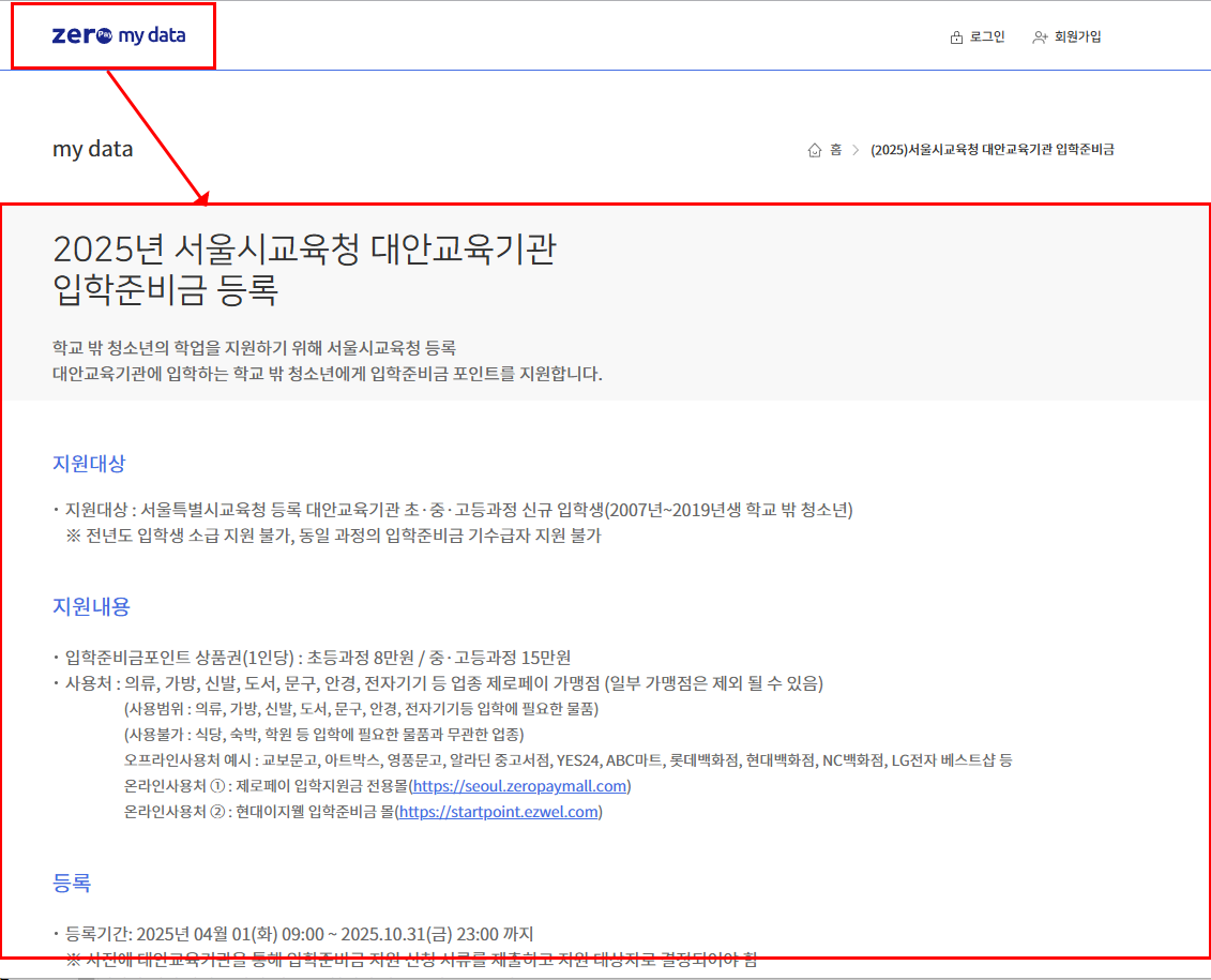 • 신청 기간: 2025년 4월 1일(화) 09:00 ~ 10월 31일(금) 23:00