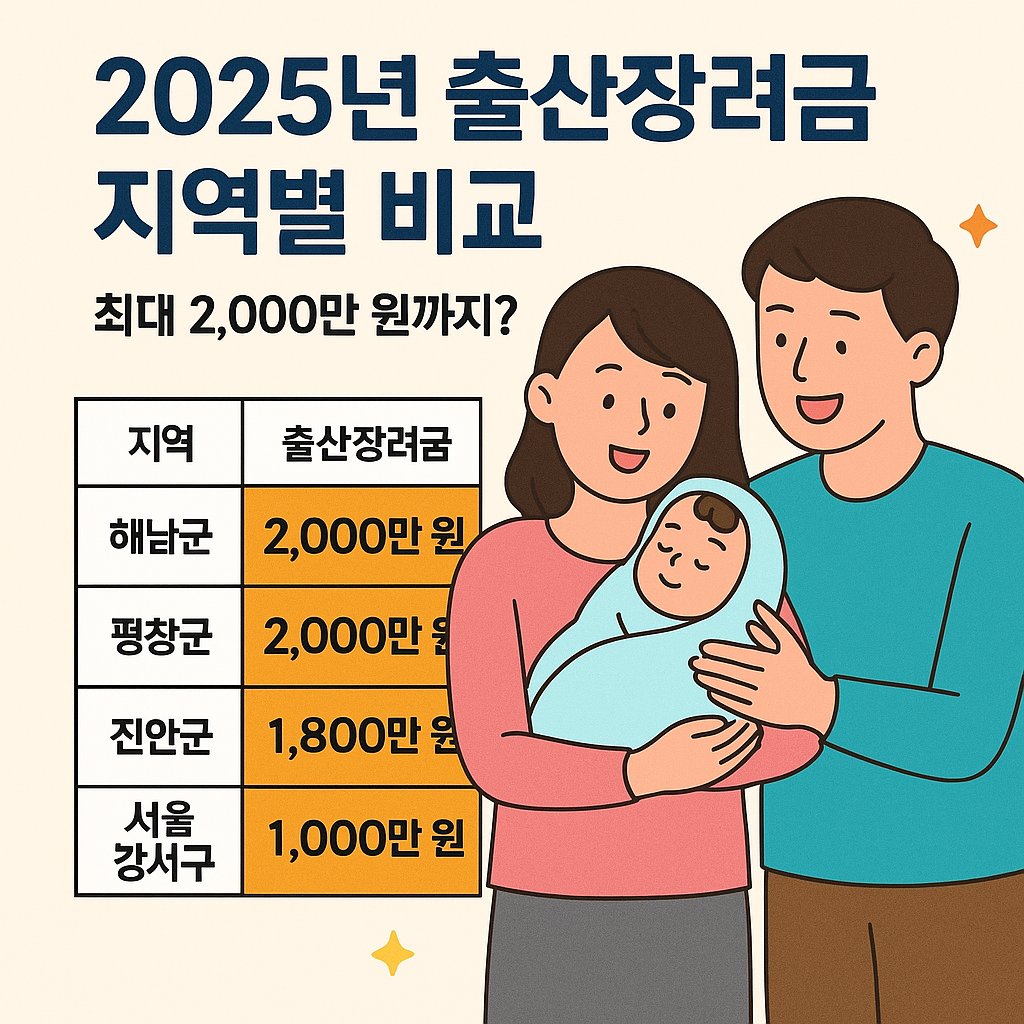✅ 2. 전국 주요 지자체 출산장려금 비교 (2025년 기준)
