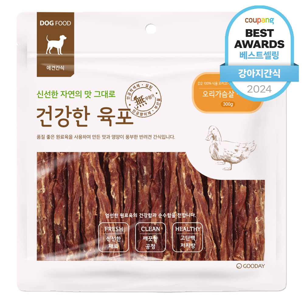 굿데이 건강한 육포 강아지 간식 - 오리가슴살 스틱모든 반려동물 주인들에게, 사랑하는 강아지를 위한 완벽한 간식이 여기 있습니다! 굿데이(Goodday)가 제공하는 '건강한 육포 강아지 간식, 오리가슴살 스틱'은 자연스러운 재료와 정성을 한데 모아 완벽한 간식 시간을 만들어 줍니다. 품질을 중시하는 굿데이가 책임집니다.지금 구매왜 굿데이 오리가슴살 스틱인가요?고단백, 저지방 - 강아지의 에너지를 풍부하게!무첨가물 - 자연 그대로의 맛을 제공합니다.적당한 사이즈로 모든 견종에게 적합한 간식.제품 상세 스펙항목상세내용중량300g주재료오리가슴살원산지국내가공바로 구매하기사용자 후기“내 강아지는 이 간식을 너무 좋아해요! 건강한 성분으로 안심하고 먹일 수 있어 좋습니다.” - 김미영“굿데이의 오리가슴살 스틱은 맛..