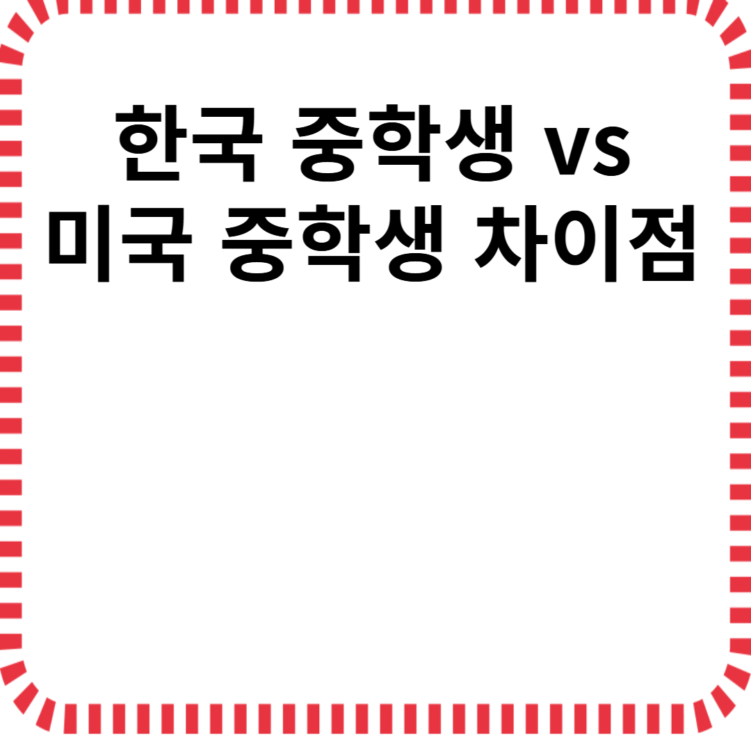 1. 학교 생활항목🇰🇷 한국 중학생🇺🇸 미국 중학생 등교 시간보통 오전 7시 30분~8시보통 오전 8시~9시하교 시간오후 4시 이후 (방과후 자율학습 포함하면 더 늦음)오후 3시쯤방과후 활동학원, 자율학습, 독서실스포츠, 클럽, 친구들과 시간 보내기학교 수업 방식강의 중심, 주입식 많음토론, 프로젝트 기반 수업 많음2. 공부 스타일 & 시험항목🇰🇷 한국🇺🇸 미국시험 빈도중간고사, 기말고사 외에도 자주 있음퀴즈나 과제 위주, 시험은 상대적으로 적음성적 평가시험 점수가 절대적과제, 참여도, 프로젝트 등 다양한 기준공부 시간방과후에도 학원 다니며 공부학교 밖 공부는 비교적 적음3. 인간관계 & 자유도항목🇰🇷 한국🇺🇸 미국교사와의 거리위계적인 관계가 많음비교적 수평적, 이름 부르기도 함패션..