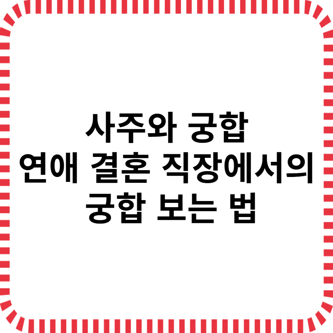 사주 궁합은 사주명리학에서 중요한 분야 중 하나로, 사람들 간의 관계와 운명을 이해하는 데 큰 도움을 줍니다. 특히 연애, 결혼, 직장에서의 궁합은 많은 사람들이 궁금해하는 주제입니다. 오늘은 사주 궁합을 어떻게 보는지, 그리고 이를 통해 우리의 인간관계를 어떻게 이해하고 개선할 수 있는지에 대해 알아보겠습니다.사주 궁합이란?사주 궁합은 두 사람의 사주를 비교하여 서로의 성격, 운명, 조화 등을 분석하는 방법입니다. 사주에는 각자의 출생 시간, 날짜, 월, 년에 대한 정보가 담겨 있으며, 이를 통해 각각의 사람은 고유한 운명을 지니게 됩니다. 사주 궁합에서는 두 사람의 천간과 지지, 오행의 흐름 등을 분석하여, 이들이 얼마나 잘 맞는지를 파악합니다. 이 분석을 통해 서로의 관계가 원만할지, 아니면 갈등을..