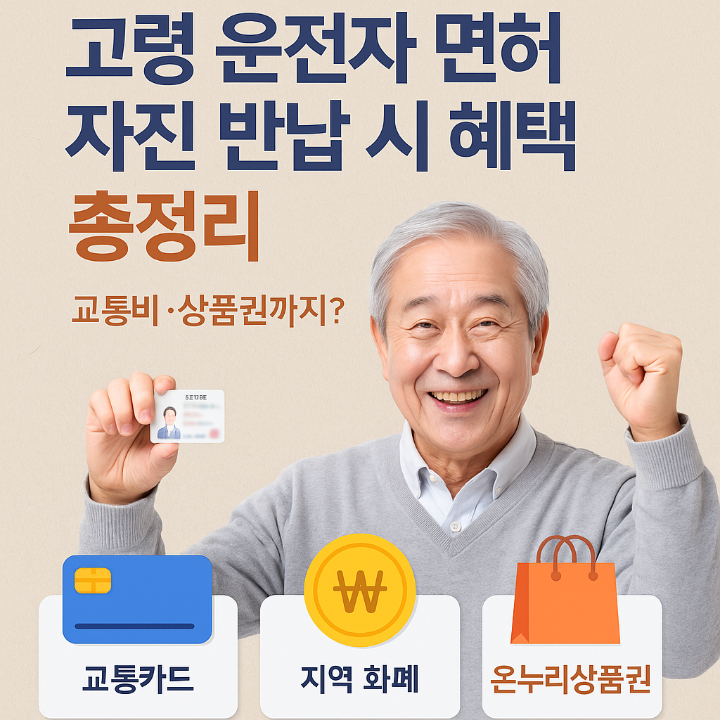 대한민국이 ‘초고령사회’로 진입함에 따라 고령 운전자의 교통사고에 대한 우려가 커지고 있습니다. 특히 70세 이상 운전자의 사고율은 꾸준히 증가하고 있어, 사회적으로도 이들의 운전면허 반납을 장려하고 있습니다.하지만 많은 분들이 **“반납하면 그냥 끝인가?”**라고 생각하는 경우가 많습니다.사실은 그렇지 않습니다.정부와 지자체는 고령 운전자가 자진해서 운전면허를 반납할 경우, 다양한 지원 혜택을 제공하고 있습니다. 이 글에서는 2025년 기준으로 고령자 운전면허 자진 반납 시 받을 수 있는 혜택과 신청 방법, 지자체별 차이를 정리해 드립니다.✅ 1. 고령 운전면허 자진 반납이란?‘고령 운전면허 자진 반납 제도’란 만 65세 이상의 고령자가 더 이상 운전을 하지 않기로 스스로 결정하고 운전면허증을 반납하는..
