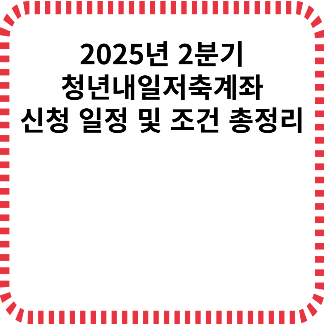 2025년 2분기 청년내일저축계좌 신청 일정 및 조건 총정리는 많은 청년들이 기다려온 핵심 이슈입니다. 매월 일정 금액을 저축하면 정부가 최대 3배까지 매칭해주는 청년내일저축계좌는 근로 청년들의 자산 형성을 지원하는 대표 복지제도입니다. 이번 2025년 2분기 청년내일저축계좌 신청 일정 및 조건 총정리를 통해 대상자 기준, 소득 요건, 제출 서류 등 실질적인 정보를 모두 확인해보세요. 2025년 2분기 청년내일저축계좌 신청 일정 및 조건 총정리만 잘 알아도 수백만 원을 모을 수 있는 기회가 됩니다. 이제, 2025년 2분기 청년내일저축계좌 신청 일정 및 조건 총정리를 자세히 살펴봅시다.청년내일저축계좌란?청년내일저축계좌는 매월 10만 원 이상의 금액을 꾸준히 저축하면, 정부가 조건에 따라 최대 30만 원까..